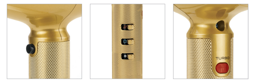 Управління режимами роботи моделі BaByliss WHITEFX спрощене та зроблене за допомогою нових перемикачів. Модель має 2 режими температури та 2 режими швидкості. Холодне обдування працює тільки з натиснутою кнопкою, постійного холодного повітря немає. Так само в моделі реалізований режим Турбо з окремою кнопкою, який дозволяє збільшити продуктивність повітряного потоку за рахунок збільшення швидкості обертання мотора. Ця функція може бути корисною, коли необхідно завершувати фіксацію зачіски або вже прискорити сушіння з укладанням.